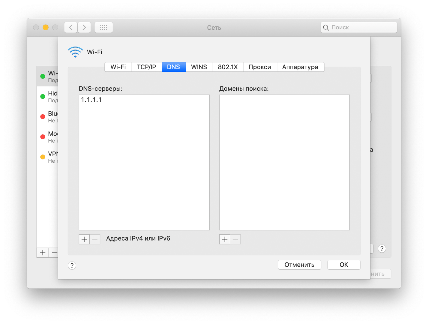 Abra "Preferencias del sistema", luego "Red". Seleccione a la izquierda la interfaz de red que se utiliza para conectarse a Internet. Por ejemplo, podría ser Wi-Fi.
