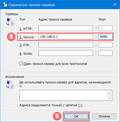 Потім виберіть рядок, що відповідає типу проксі, який ви хочете використовувати: HTTP, Secure (він же HTTPS) або SOCKS. Введіть IP-адресу і порт проксі.